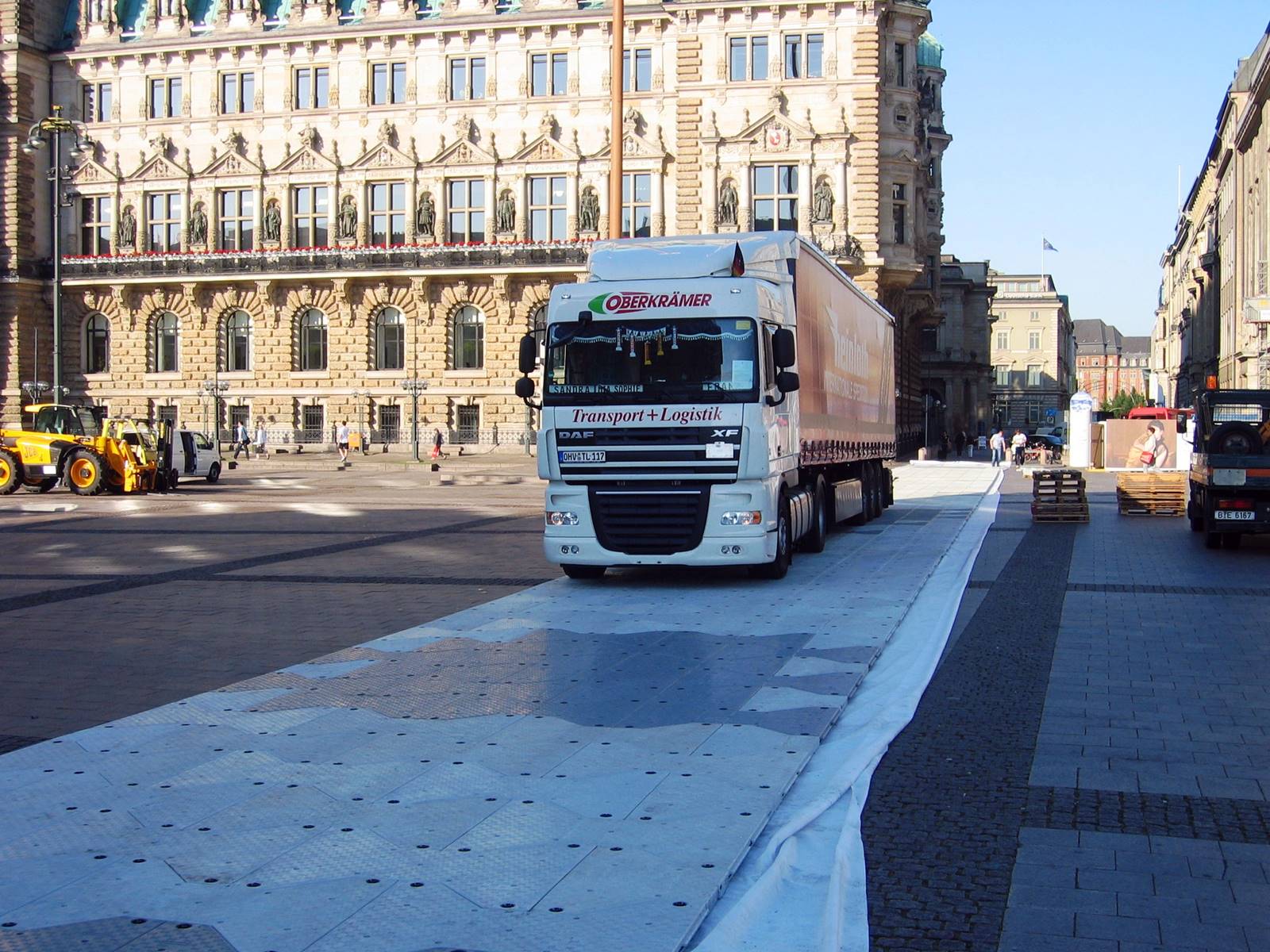 Jedes Panel bedeckt 0.8 m² Oberfläche und wiegt dabei nur ca. 18 kg. Durch das geringe Eigengewicht können LKW's oder Container mit bis zu 52 Paletten (750m²) beladen werden, ohne deren Ladekapazitäten zu überschreiten. Außerdem ist es unempfindlich gegen diverse chemischen Substanzen.