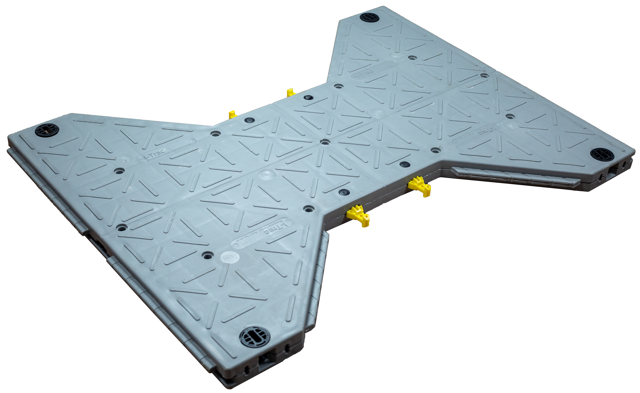 I-Trac ist ein schwerlastfähiges Bodenschutzsystem, das den Fahrzeugverkehr auf ungeeigneten oder unsicherem Untergrund ermöglicht. Durch das sichere integrierte Verbindungssystem entstehen durchgehende Oberflächen, die nicht nur alle straßentaugliche Fahrzeuge sondern auch extrem hohe statische Lasten verkraften können. Die Montage erfordert keinerlei spezielle Werkzeuge und ermöglicht einen schnellen Auf- und Abbau. Jedes Panel hat 6 Andockpunkte, die bei Bedarf individuell erweitert werden können.